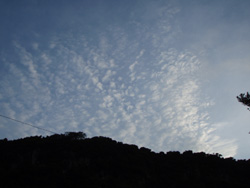 雲一色の朝、予報では晴れになっているが。