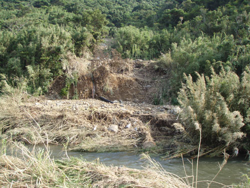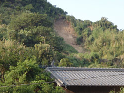 梅雨明け宣言が昨日あった。当分天気が続くようだ、一気に復旧作業が進んでもらいものだ。(写真は人家上の土砂崩れ、幸いこの崩れは人家まで到達せず)