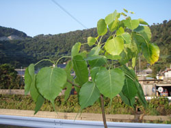 さあ、きょうも全く風なし、果たして何度まで上昇するのやら。(写真はインドボダイジュ)